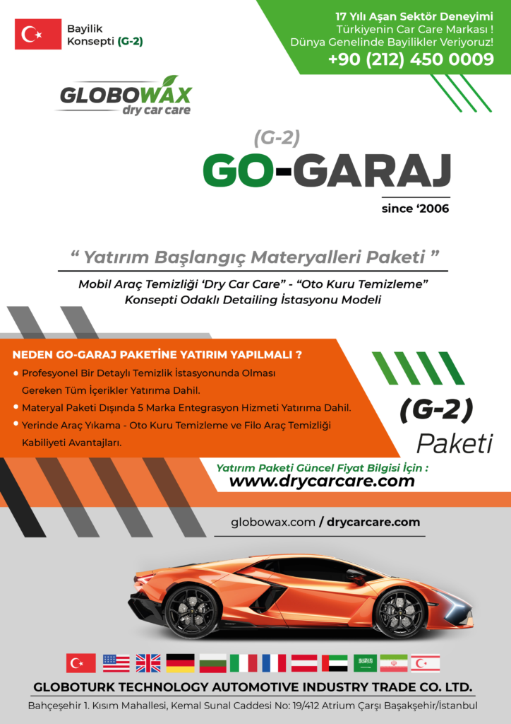 GLOBOWAX Markamız Dry Car Care Türkiye konseptimiz standart hizmet anlayışı, kimyasal ürünlerinin performansındaki kalitesi ve çeşitliliği, kendini farklı kılan istasyon dekorasyonları, profesyonel işletme sistemleri, sektördeki yenilikleri, destek veren ekipleri ve kurumsal yapısıyla, müşteri memnuniyetine verdiği maksimum özen, GLOBOWAX’ın franchise almak ve bayii olmak için mükemmel bir adres olduğunu gösteren nedenlerden sadece birkaçıdır.