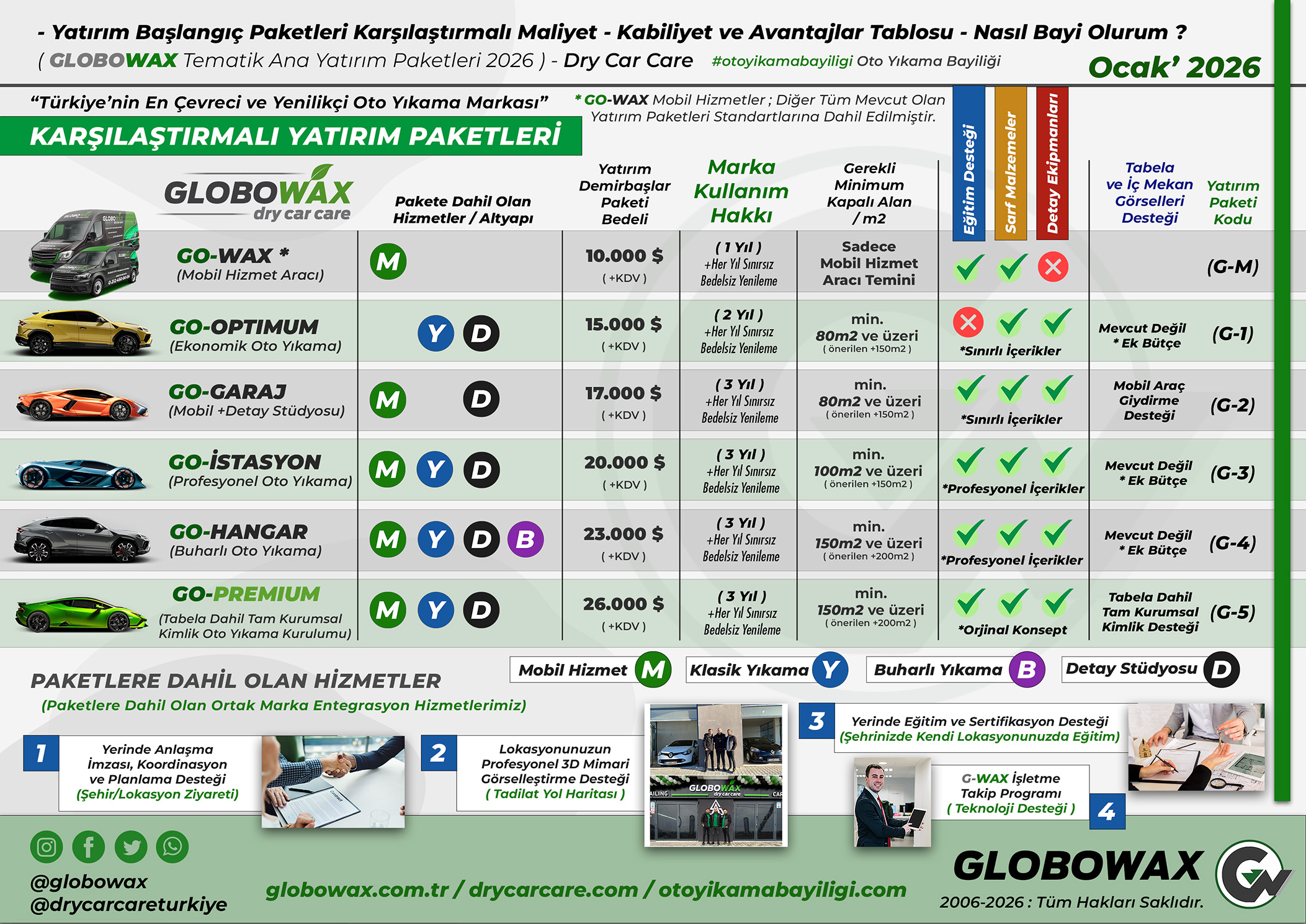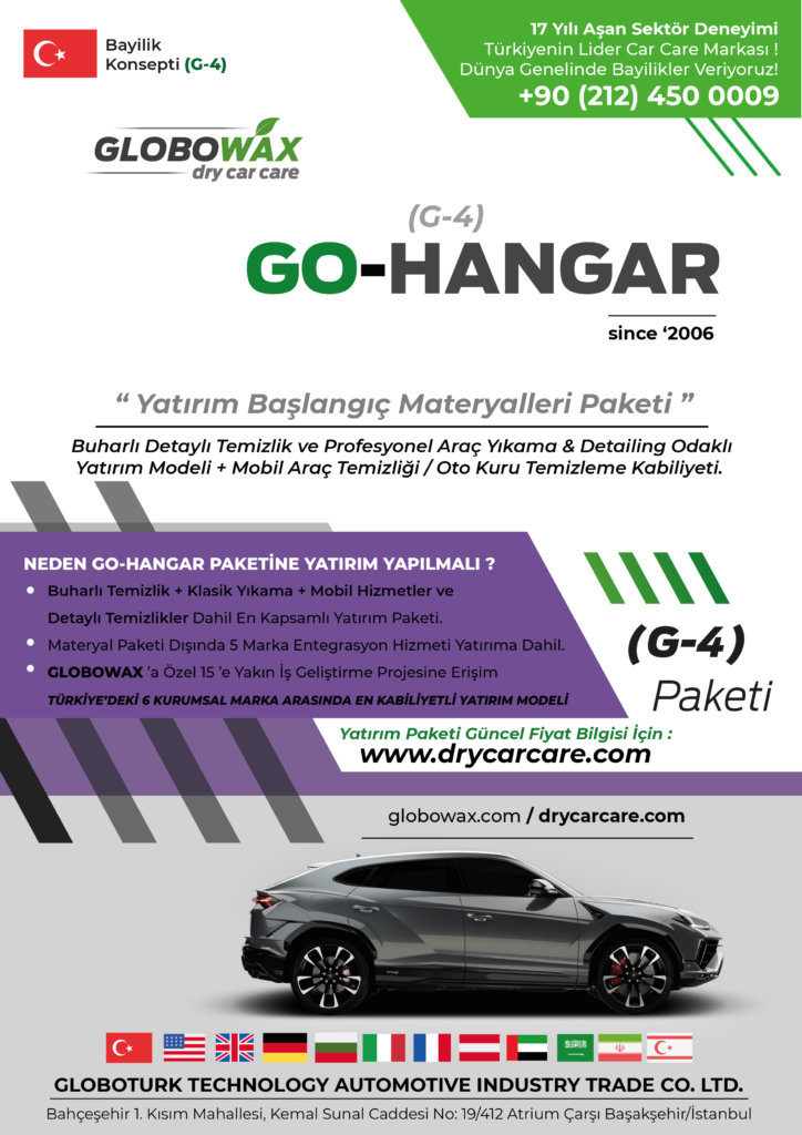 GO-HANGAR Klasik Oto Yıkama & Oto Kuru Temizleme & Buharlı Detaylı Temizlik Uygulamaları Dahil Bayilik Başlangıç Paketi :