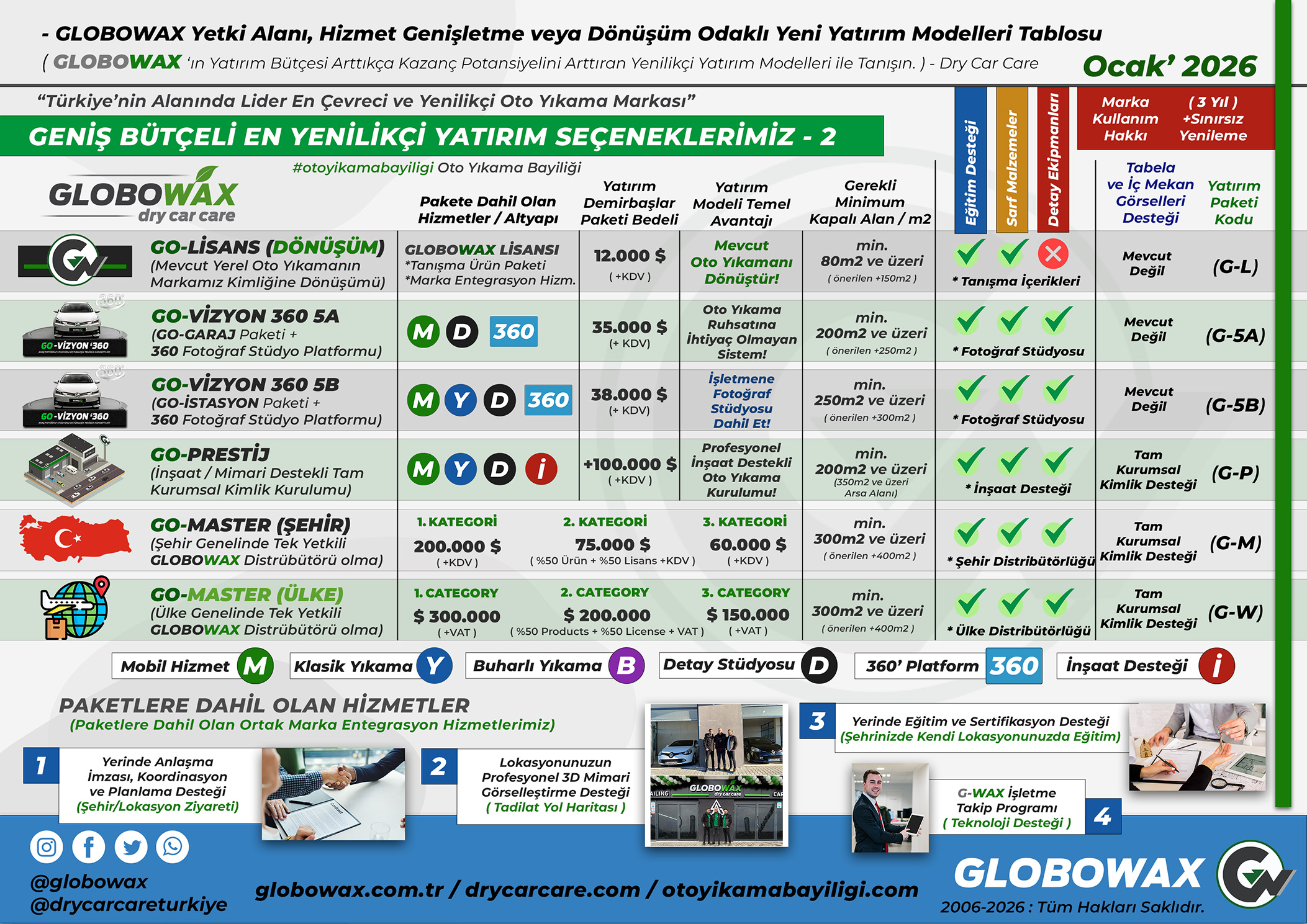 OTO YIKAMA BAYİLİK – YENİ NESİL ÇEVRECİ ARAÇ YIKAMA KONSEPTLERİ -GLOBOWAX